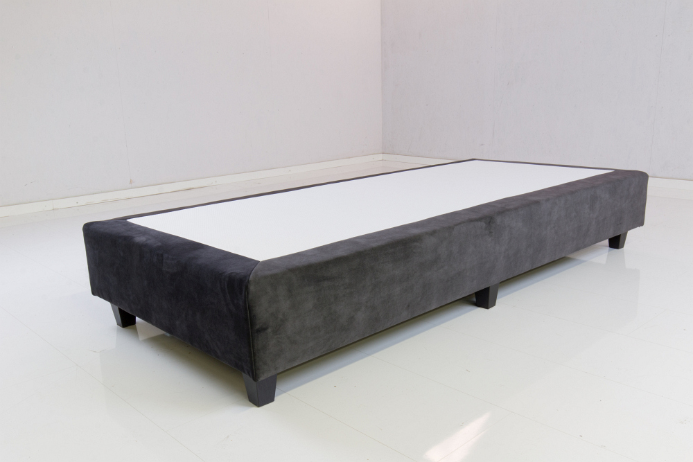 Een dik vurenhouten frame in combinatie met spaanplaat (dikte 25 mm) vormt de boxspringbak met ventilatiegaten. Boven op dit alles komt het veersysteem, voor deze boxspring is dat een dubbel geharde bonnell veer. Dit alles is ingeschuimd met SG 40 polyether en fiberfill. Door deze goed verend en ventilerende constructie is kraken van deze boxspring absoluut onmogelijk en daardoor ook geschikt voor projecten.